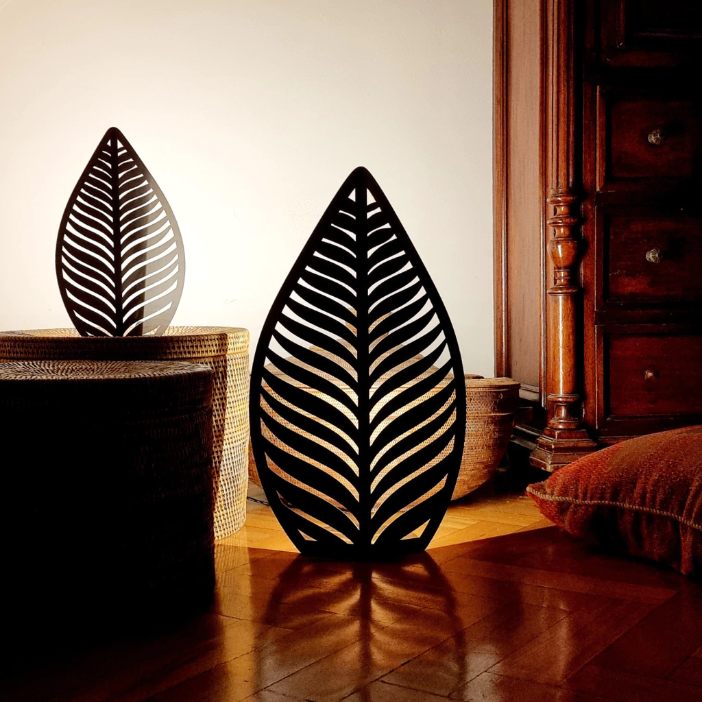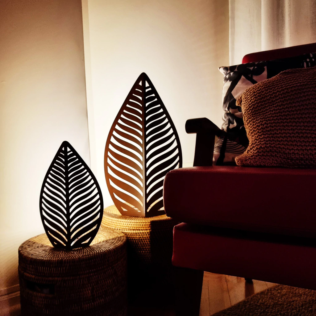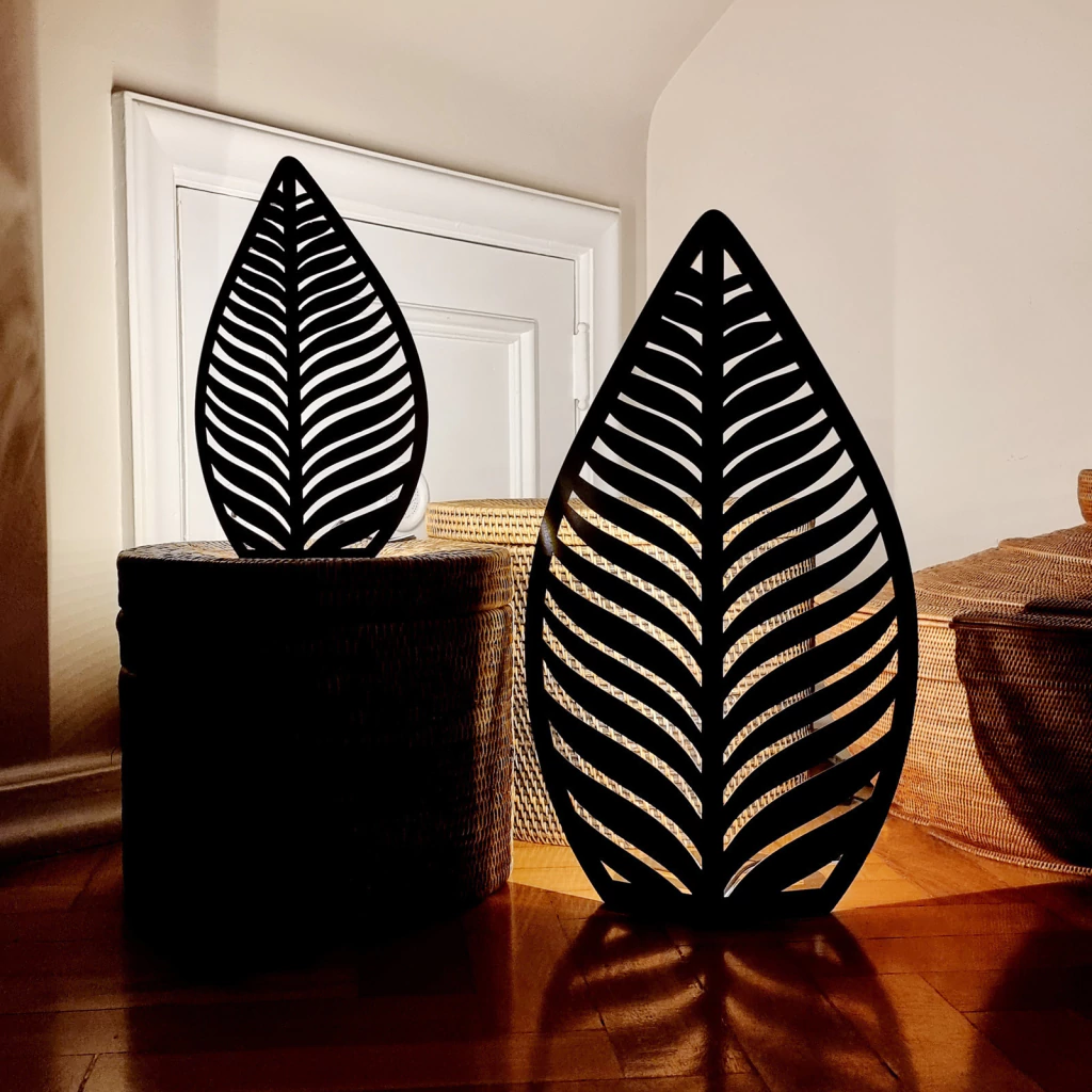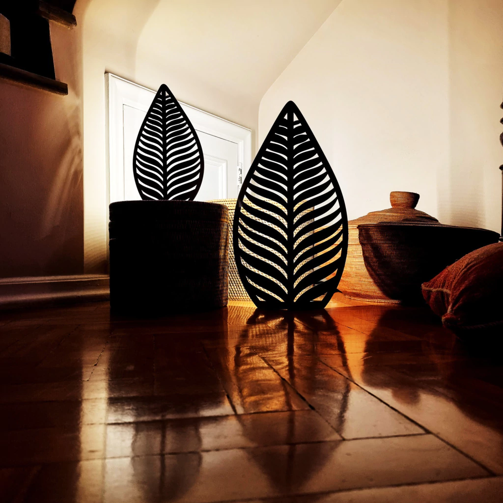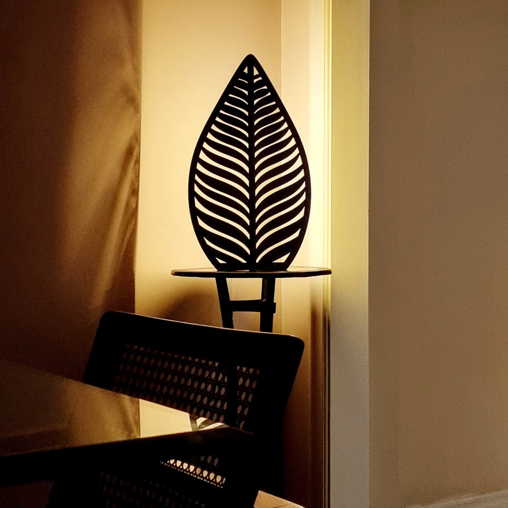 Com o seu formato de folha ela fica ótima ao lado de vasos e plantas, no alto de um aparador, num canto da sala ou onde mais a imaginação permitir.