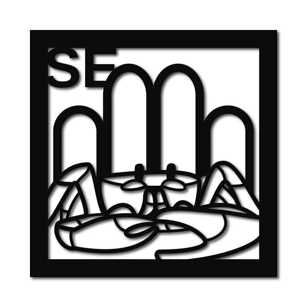 Feito com corte laser no ferro com pintura eletrostática fosca e micro texturizada.