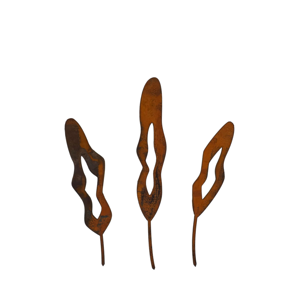 Feita em Aço Corten, esta peça possui um acabamento elegante e naturalmente rústico. A pátina de ferrugem que se forma é sua proteção e sua beleza, garantindo uma cor e textura exclusivas que evoluem com o tempo — uma verdadeira arte viva no seu jardim ou ambiente interno.