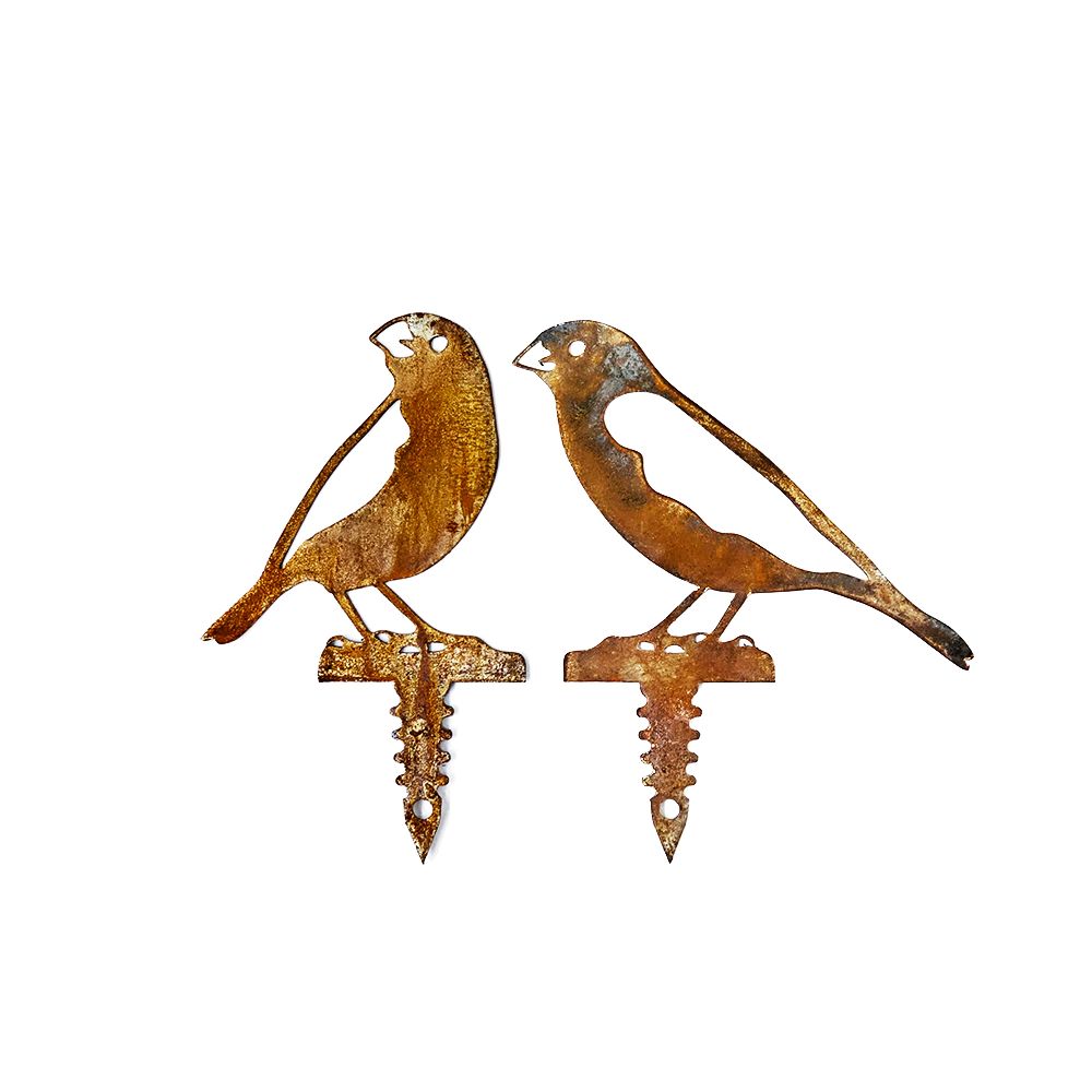 A Escultura de Jardim: Canarinhos da Terra é uma peça decorativa única, composta por duas figuras de canários-da-terra em tamanho real, cortadas em aço corten. Cada pássaro possui estaca na base para para fácil instalação em jardins, quintais ou vasos de plantas, proporcionando um toque super charmoso ao seu espaço.